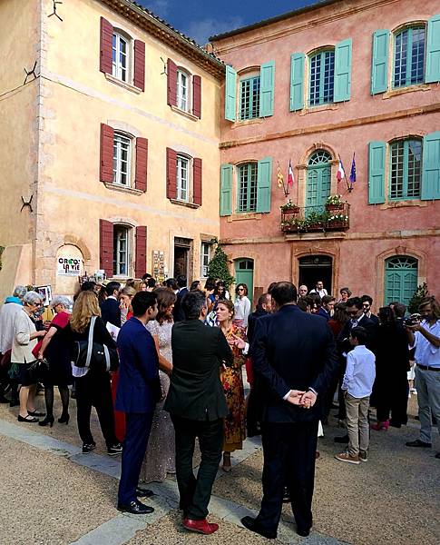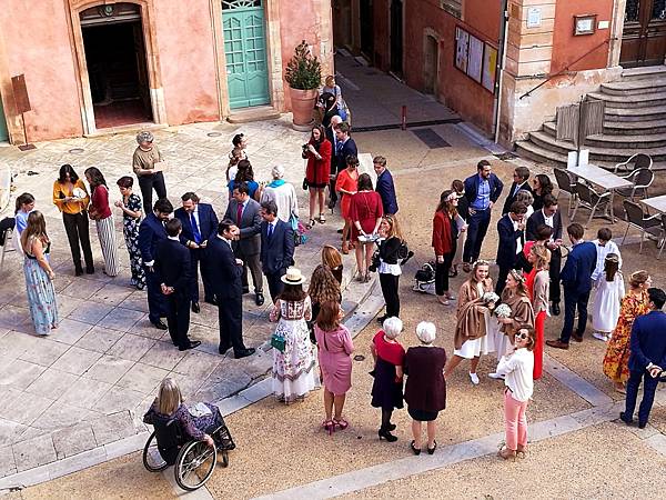 在這種南法鄉村小鎮,竟然有這麼多人穿著正式服裝,必定事有蹊俏,一定要去圍觀一下啦