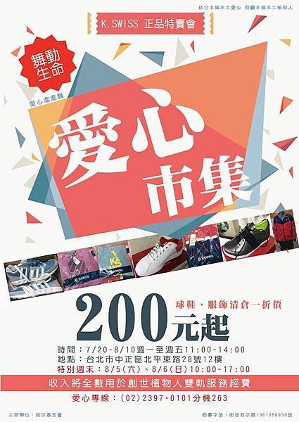 這活動是由創世基金會主辦,拍賣K.SWISS捐贈物資,而拍賣的全部收入將會投入支持植物人雙軌服務