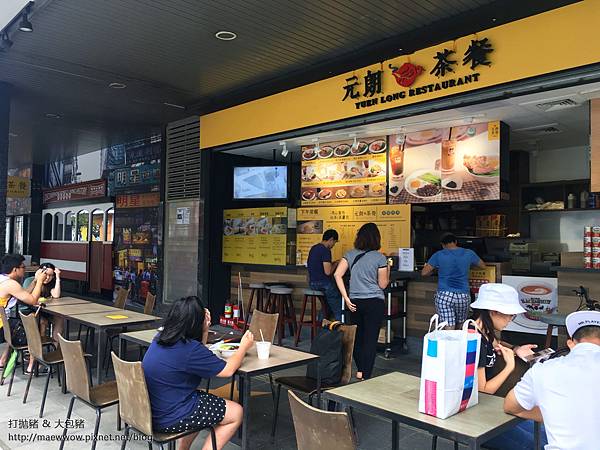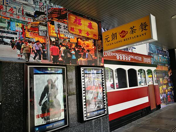 經過信義威秀影城後面會發現,有很長的一面牆都打著元朗茶餐廳的廣告,把香港街頭的景色以及電車搬到台北來,尤其打造了香港經典電車場景,還滿有吸引力的