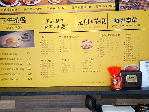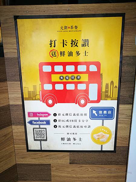 元朗茶餐廳雖然走的是香港的古早味餐廳,但信義店可圈可點的地方是比較跟得上時代潮流,有打卡專屬優惠「打卡按讚送鮮油多士」,有這種好康一定要分享一下