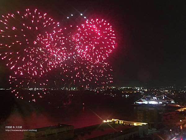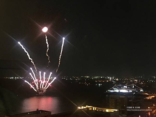 從大包豬泡的男湯向外看過去可以直擊煙火的施放