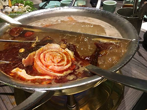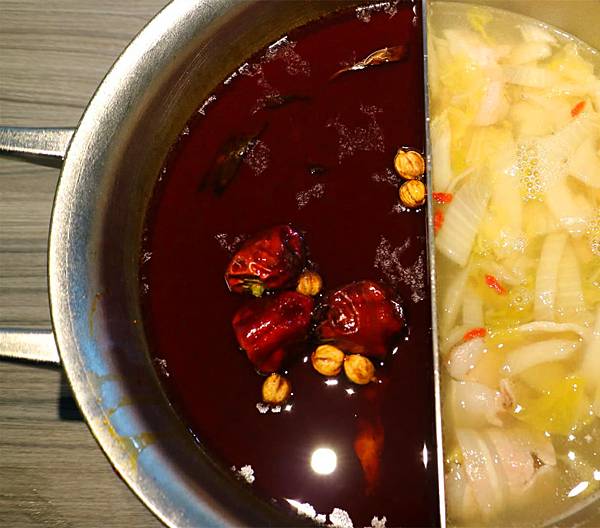 正好我們點的就是結合兩種鍋底的鴛鴦鍋
