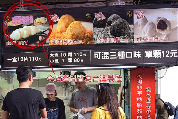 店內的招牌是有三種口味的「包餡麻糬」以及100%純糯米製作的「DIY麻糬」