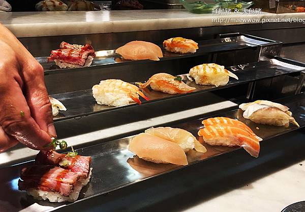 饗食天堂的炙燒握壽司系列則是早已經炙燒好 直接取用