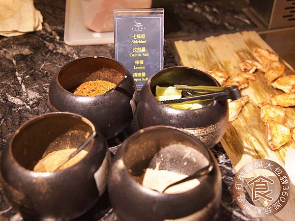 挑自己喜歡的調味粉灑在雞肉品嚐