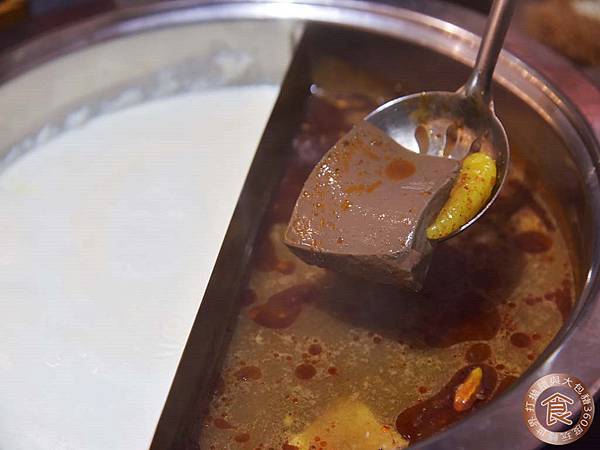 招牌麻辣鍋底裡有鴨血豆腐