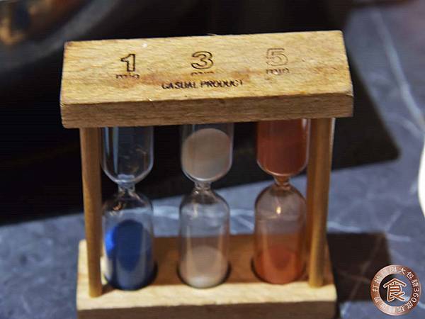 桌上的沙漏,分別為1、3、5分鐘,不同食材煮的時間就不同