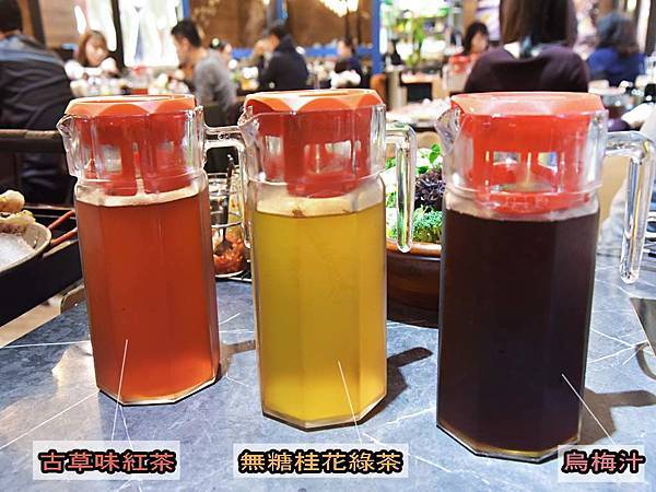 飲料有三種:古草味紅茶、無糖桂花綠茶、烏梅汁