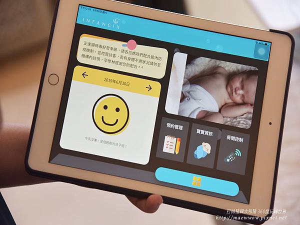 可以透過孕學林APP 觀看寶寶的狀況作息、預約訪客、預約媽媽教室...