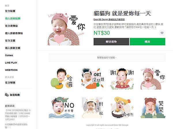 想要送給阿公阿媽一組專屬於我們家小寶貝的line貼圖