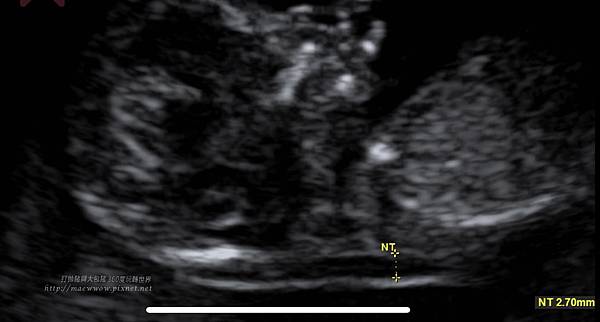 超音波檢查過程中,頸部透明帶2.7,(頸部透明帶的標準值為2.5或3mm以下),勉強在合格邊緣