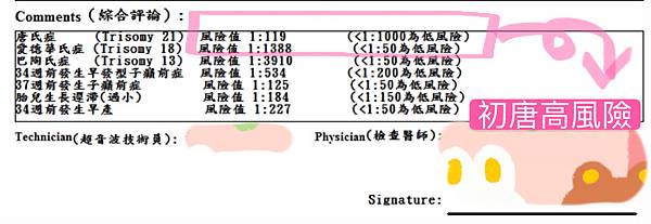 看到報告1:119,再看看低風險要<1:1000,這才意識到,我的小孩可能是唐寶寶!!