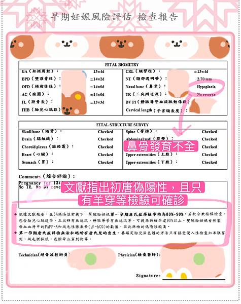 (媽媽對初唐的了解就是頸部透明帶的厚度,還沒有意會到醫生說照不到鼻骨的意思)