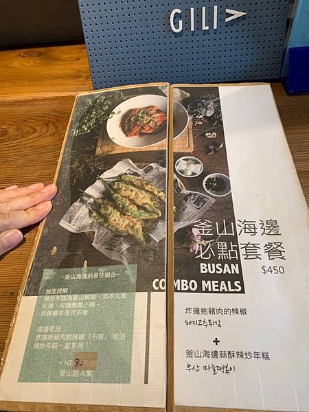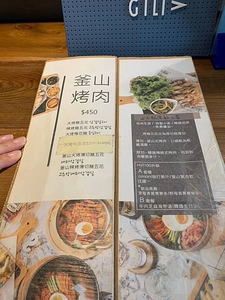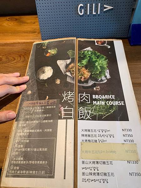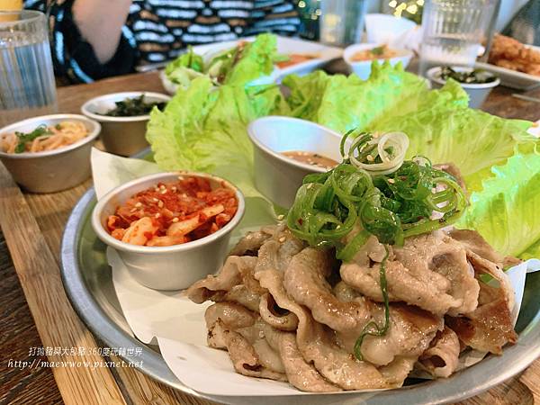 GiliGili是家主打烤肉的韓式餐酒館,最招牌餐點是火烤豬五花和火烤梅花豬,烤肉還會附上生菜、泡菜、海帶芽等小菜,拿起一片生菜,放上幾片剛烤好香噴噴的豬五花、泡菜、海帶芽,再豪邁的一口咬下,嗯~這就是韓劇最強國民美食的滋味。