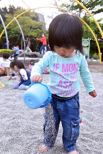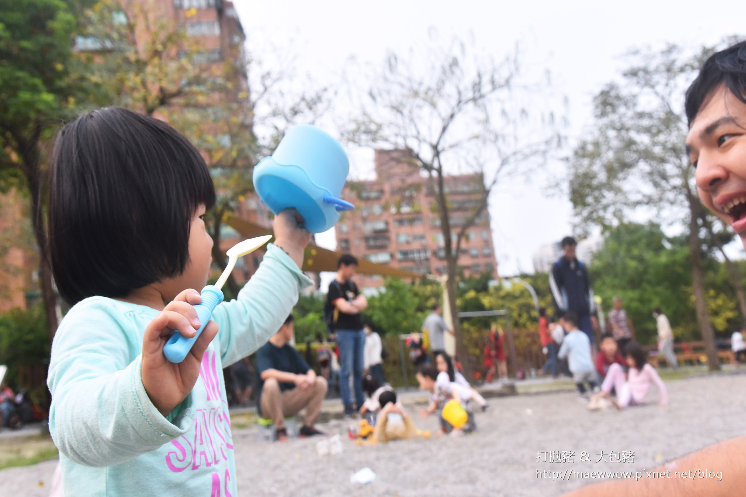 只要拿出準備好的玩沙組,我們家1.7Y的妞大爺可以在這邊放生玩一個小時以上沒問題