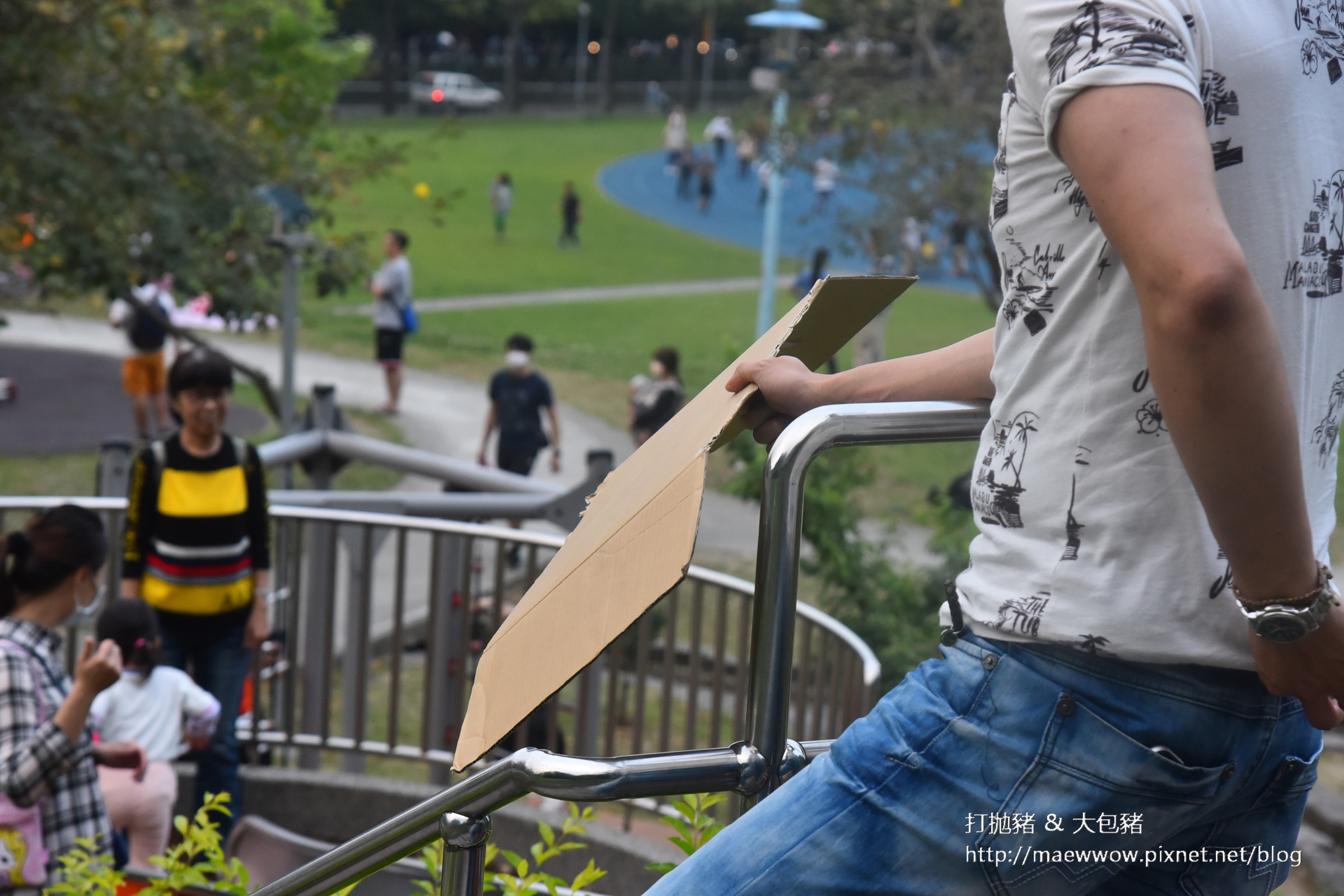 但~現場還滿多大朋友小朋友還是拿滑草板或是紙箱盒當作坐墊 加速溜的速度(NG)
