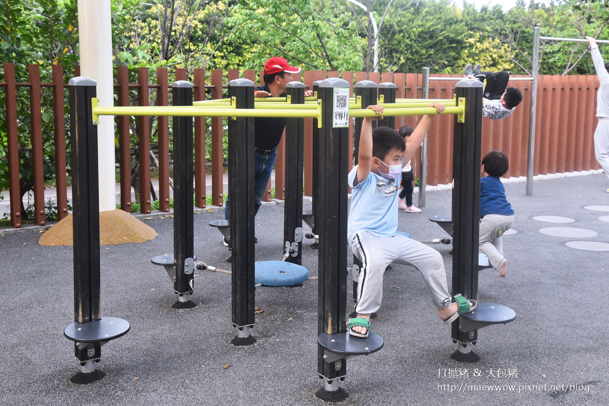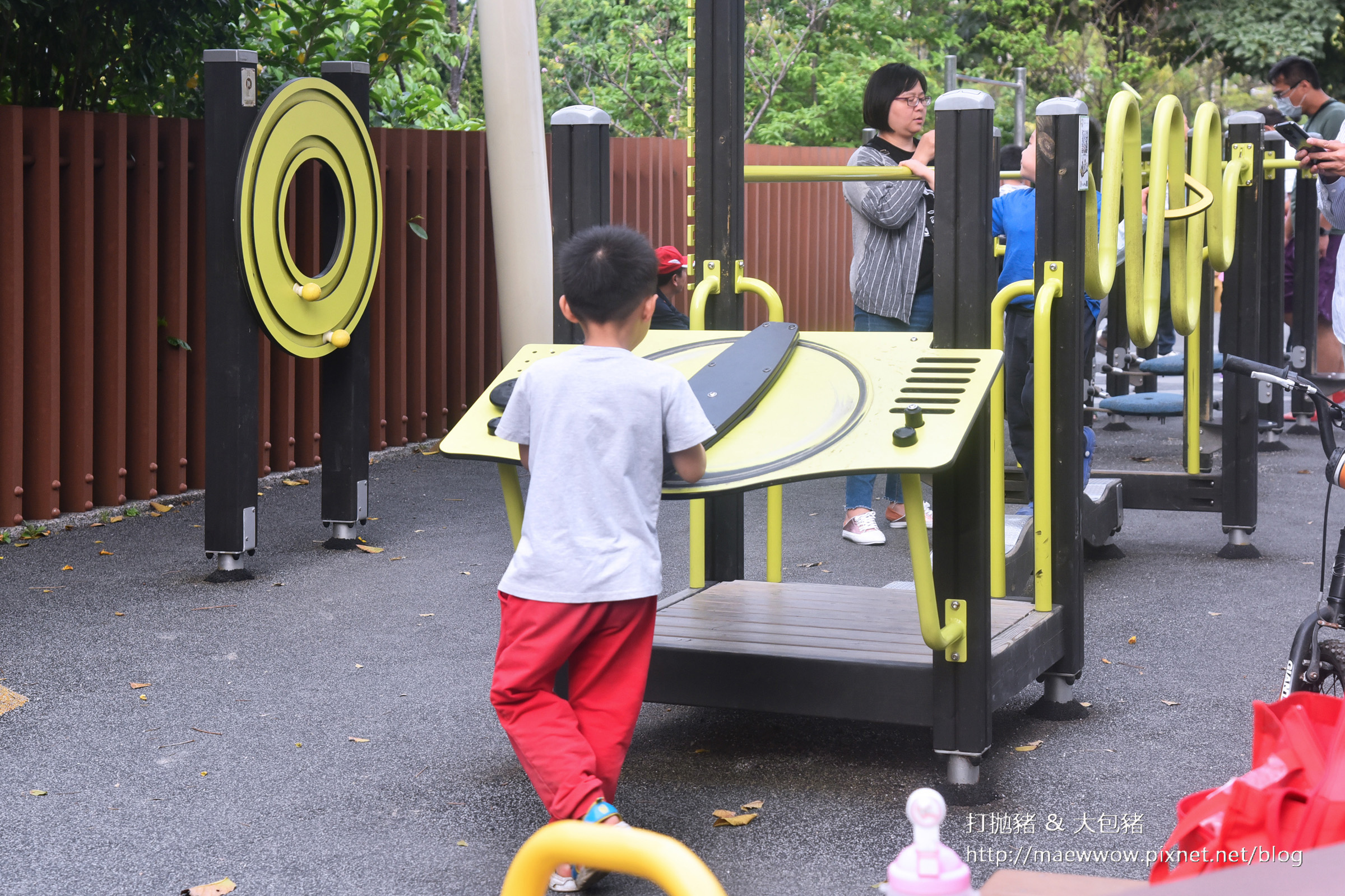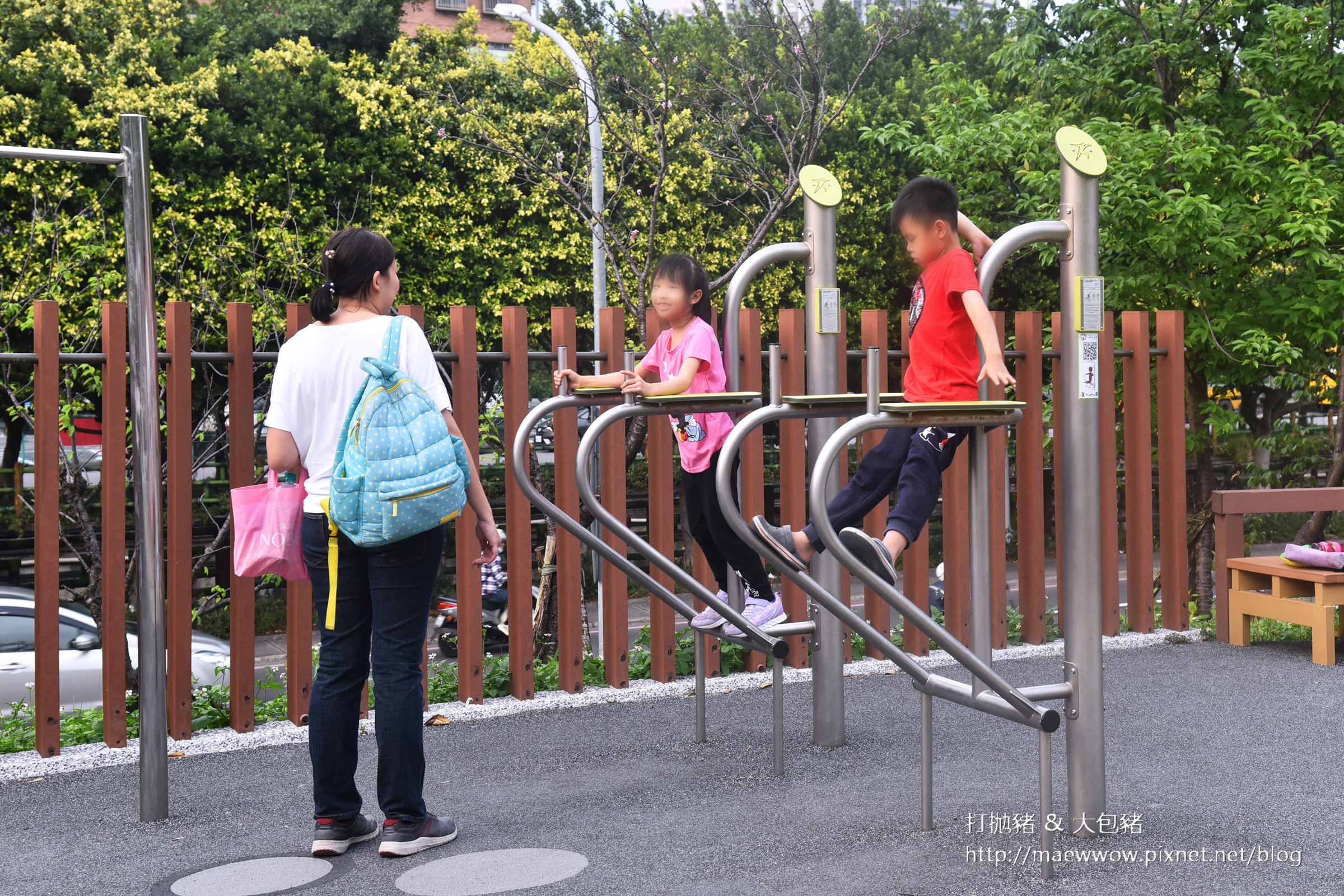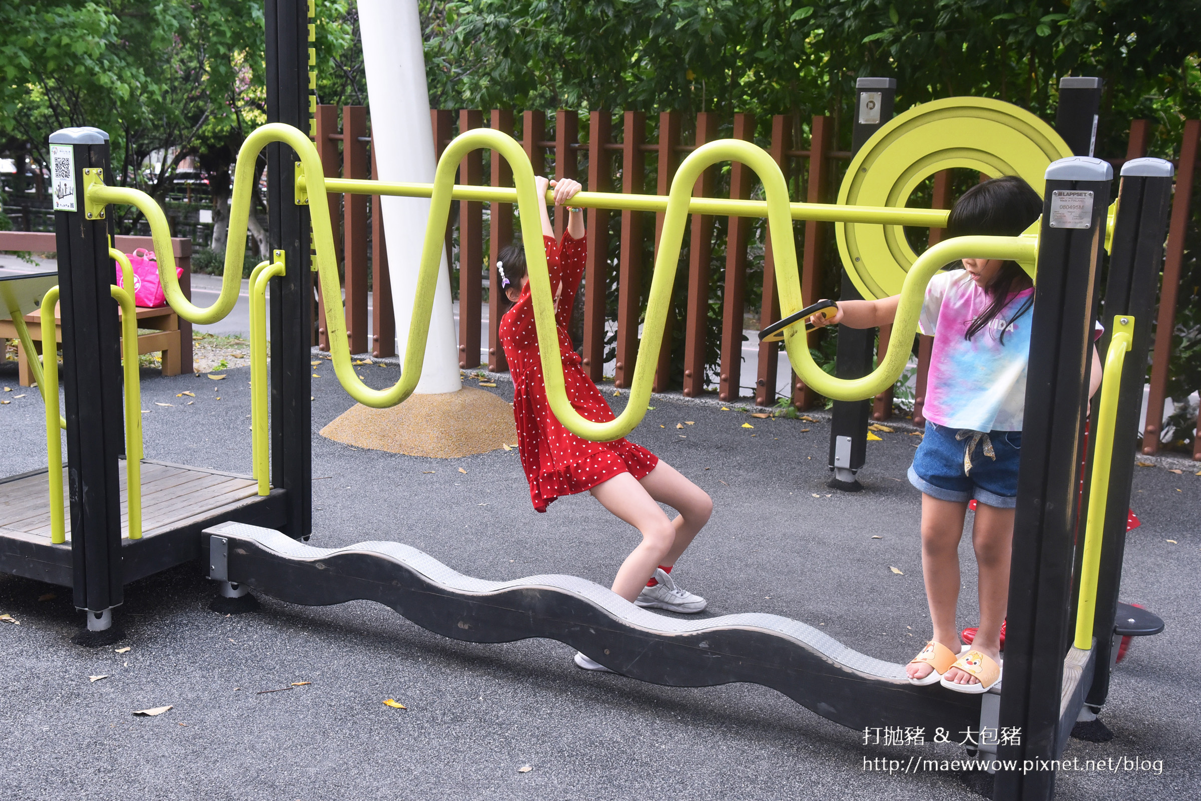 一般的公園溜滑梯旁也會附有一些健身設施for大人使用
