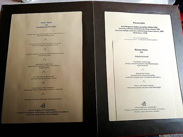 所以,我們2人就一個點Bridge Menu(only for lunch)35歐及Pork Menu 75歐