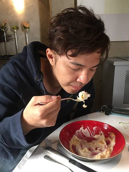 (真懷疑廚師怎麼做得出來這麼小的泡芙,還要再這麼小的泡芙裡頭擠醬...難度太高了吧)