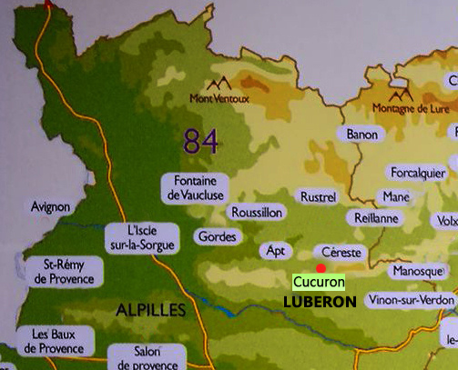 而Chloe的民宿位於屈屈龍(cucuron),是法國普羅旺斯-阿爾卑斯-藍色海岸大區,沃克呂茲省的一個市鎮,正好位於最西邊的勾禾得及最東邊的瑪麗山城中間附近。