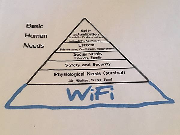 ▲Chloe很有趣的惡搞了一張人類需求五層次理論,增加了最重要的WIFI