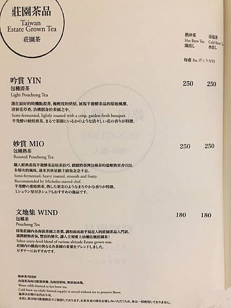 這組套餐搭配的是輕度烘培與半發酵的包種清茶「吟賞」