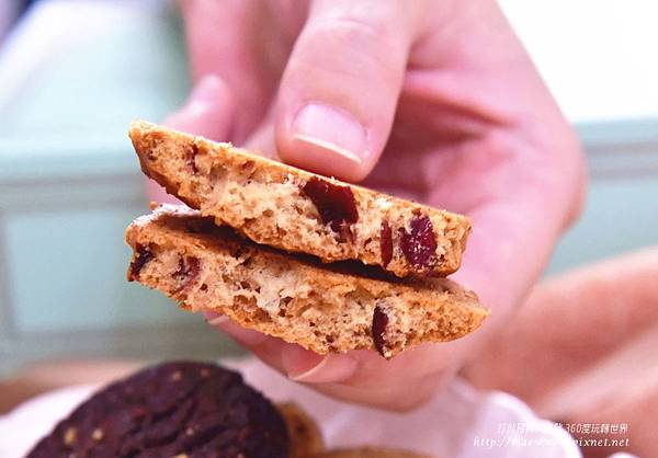 一口咬下吃得到脆脆的玉米片以及蔓越莓果粒